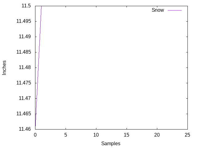 Some variation due to temperature fluctuations, turbulence and other ultrasonic anomalies are to be expected. Typically this error will be less than 0.5 inches or so, positive or negative. Also, the range finder reports millimeters directly. This is converted to inches by a script running on my Linux computer.